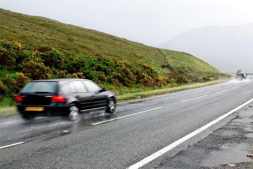 Rainwater reduces friction between tires and the road surface, which increases the risk of losing control.